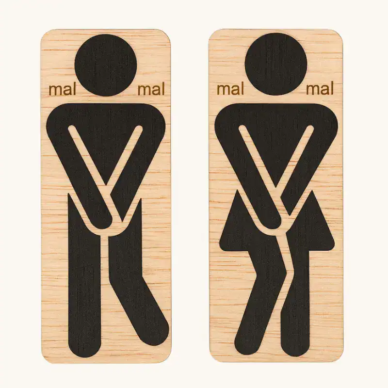 Maak je toiletdeur stijlvol én duidelijk met deze houten WC-bordjes van man & vrouw. Eenvoudig te bevestigen dankzij de sterke zelfklevende achterkant – boren of schroeven is niet nodig. Het minimalistische zwarte design past in elk interieur en blijft lang mooi. Leuk als eyecatcher én origineel cadeau!